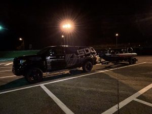 GMキャッチネットをボートに積み込んでいます。