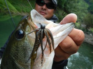 クランキングという釣りの最中に発見し、一撃で食わせたバス。